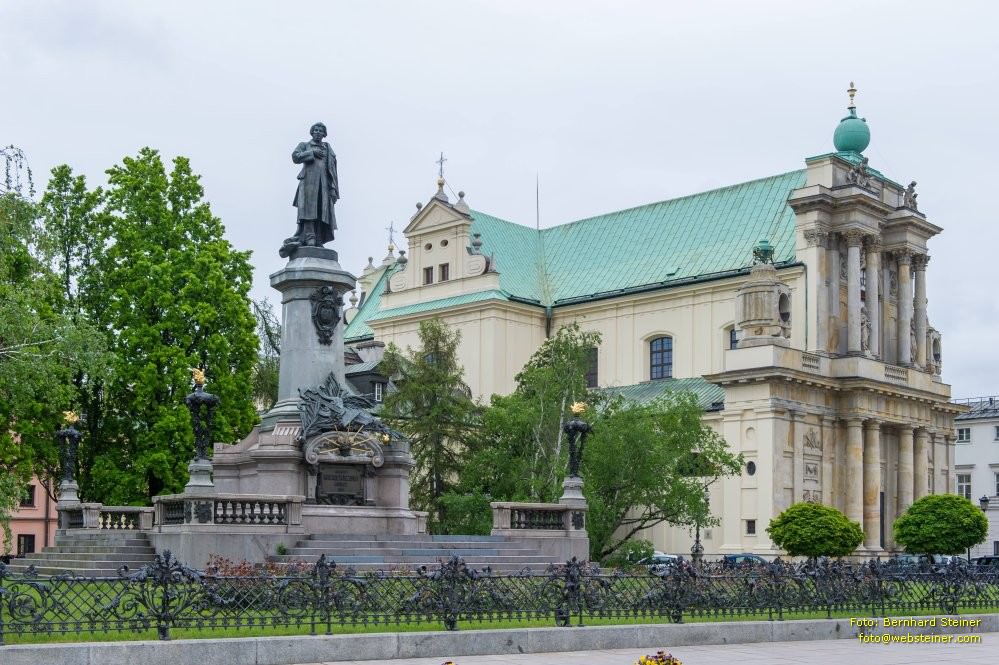 Das Adam-Mickiewicz-Denkmal (Pomnik Adama Mickiewicza) steht am Warschauer Königsweg neben der 'Karmeliterkirche der Maria-Himmelfahrt und St. Joseph ihres Bräutigams' (Kosciol Wniebowziecia Najswietszej Maryi Panny i sw. Jozefa Oblubienca).