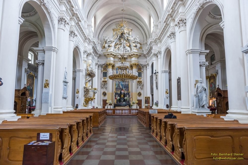 Im Inneren wurde von Johann III. Sobieski nach seinem Sieg in der Schlacht am Kahlenberg ein Chorgestühl gestiftet, das heute als Rekonstruktion erhalten ist. Eines der ältesten Ausstattungsstücke ist ein Kruzifix vom Anfang des 16. Jahrhunderts, das in der barocken Baryczkówkapelle aufgestellt ist.