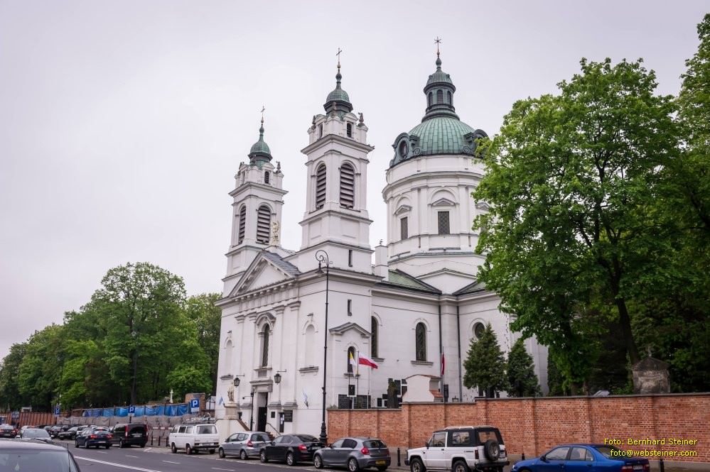 Visitantinnen-Kirche (Kosciol Wizytek) und ein Denkmal für Stefan Wyszynski (Pomnik kard. Wyszynskiego).